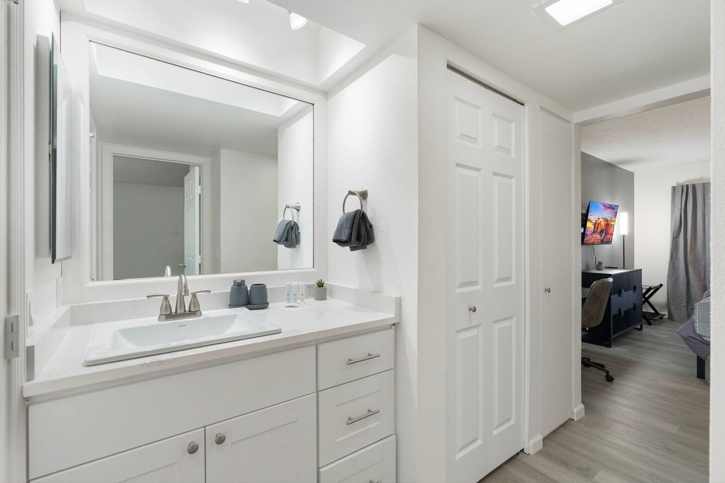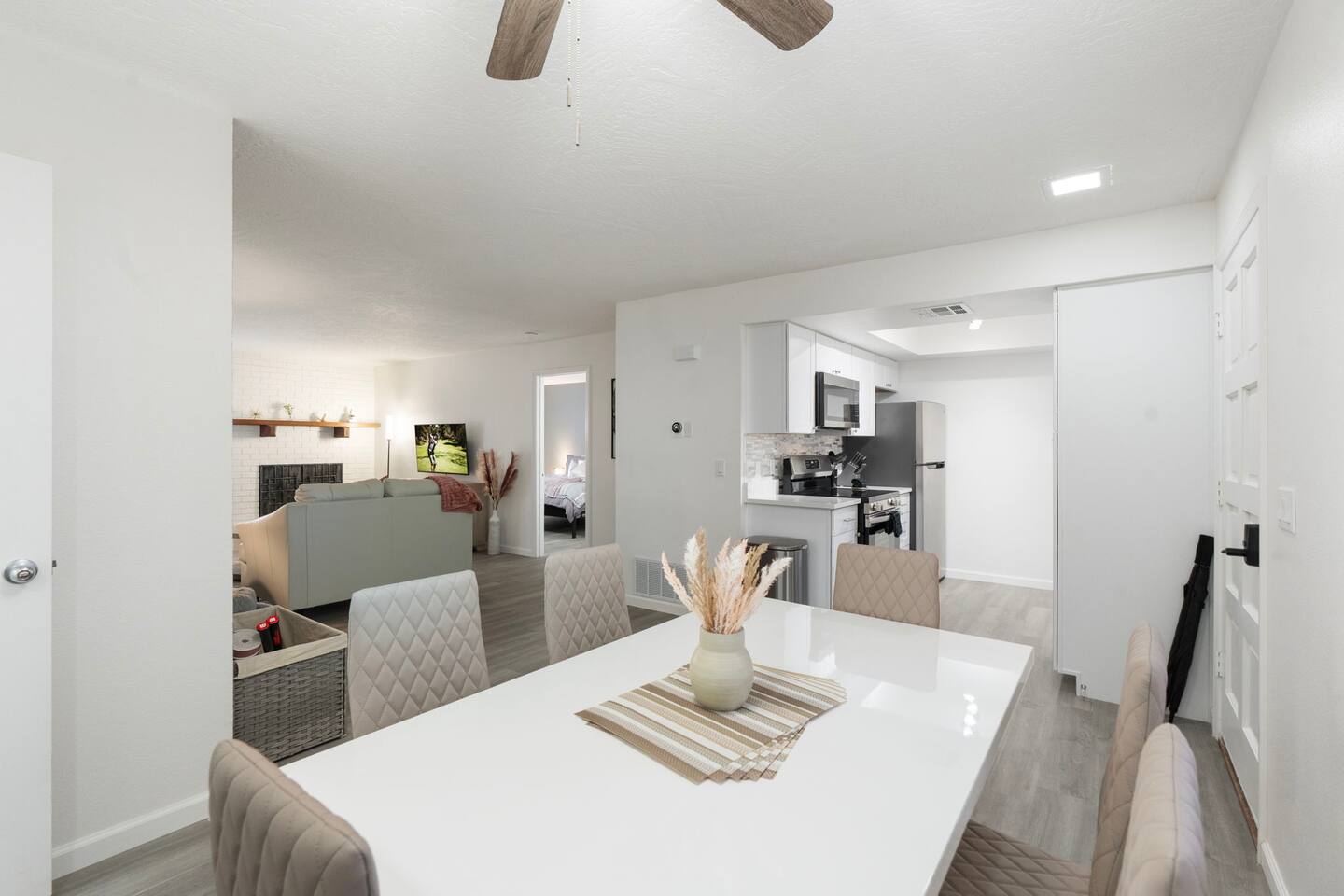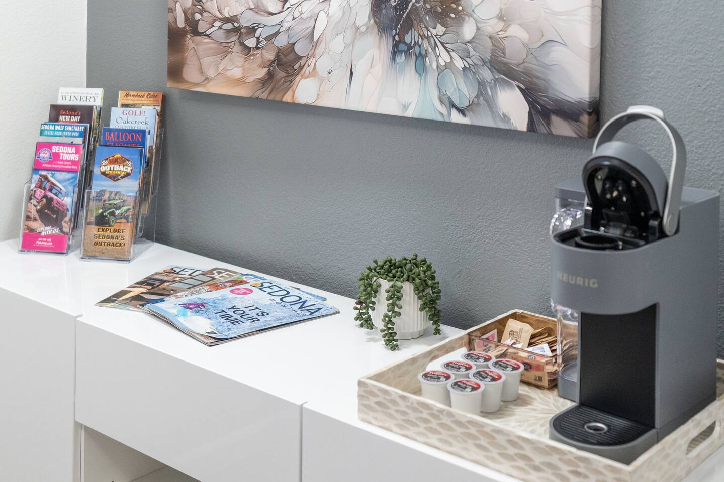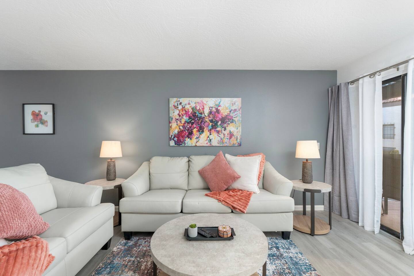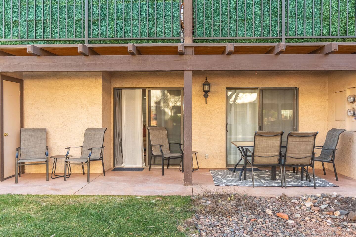 Enjoy modern comfort in this beautifully updated ground-floor 2BR/2BA condo in Sedona. The spacious living room features a queen pullout couch and opens to a private patio. Both bedrooms offer king beds with direct access to private baths. Community perks include a spa, pool, tennis & pickleball courts, and lush green space. You’re steps from the pool, and across from Sedona Vista Village shops and Clark’s Market. Ideal for those seeking convenience, relaxation, and access to nature nearby.