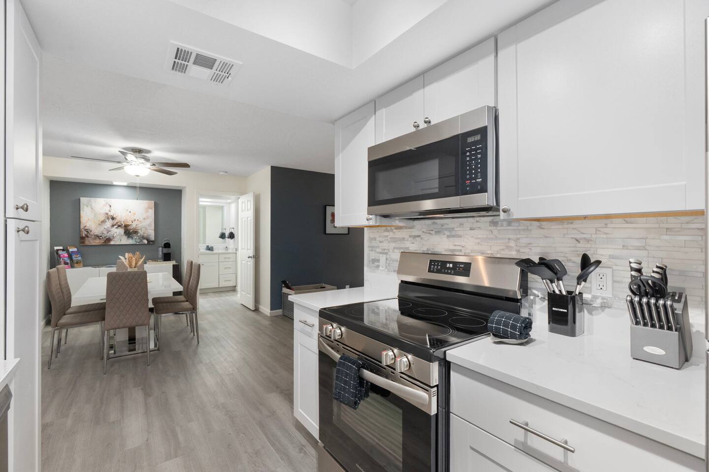 Features/Amenities: 2 bedrooms, 2 full bathrooms Spacious 1,100+ sq ft ground-floor unit (no steps) Large private patio Community pool, spa, tennis & pickleball courts In-unit washer/dryer (Energy Star) New appliances, flooring, cabinets, lighting, and more Assigned covered parking space Steps to clubhouse, pool & market Walk to Sedona Vista Village, restaurants & trails LIVING ROOM: Extra-long layout with lots of natural light Laminate plank flooring Access to large covered patio Pull out queen sofa KITCHEN: New appliances Laminate counters Fresh cabinets & lighting Electric stove with 220V Open-concept feel DINING AREA: Open to kitchen and living room BEDROOM #1 (Primary): Ensuite full bathroom Double vanity New toilet and modern fixtures Spacious closet BEDROOM #2: Ample natural light Fresh paint Comfortable layout BATHROOM #1 (Primary Ensuite): Full bathroom with double vanity New toilet, lighting, and vanity BATHROOM #2: Full bathroom Modern finishes New toilet and lighting OUTSIDE: Covered back patio Grass back area Steps to pool and clubhouse Easy walk to Clark’s Market and Sedona Vista Village Tennis & pickleball courts Expansive community green space Assigned carport parking NEARBY: Bell Rock Pathway (~1.5 mi) - Iconic red rock formation with easy-to-moderate trails and big views right from the trailhead Courthouse Vista / Courthouse Butte Loop (~2.0 mi) - Popular loop hike with sweeping panoramas and classic Sedona scenery Village of Oak Creek Shops & Dining (~1 mi) - Convenient cluster of cafés, local eats, and essentials close to home base Cathedral Rock Trail (~7 mi) - One of Sedona’s most famous hikes with steep sections and a stunning summit payoff Chapel of the Holy Cross (~7 mi) - Striking hillside chapel built into the red rocks with incredible overlook views Tlaquepaque Arts & Shopping Village (~9 mi) - Art galleries, boutiques, and shaded courtyards for an easy afternoon stroll Uptown Sedona (~10 mi) - Main strip for shopping, restaurants, galleries, and people-watching with postcard views Red Rock State Park (~12 mi) - Scenic trails along Oak Creek with wildlife viewing, picnic areas, and ranger programs Airport Mesa Scenic Overlook (~12 mi) - Classic sunset spot with wide-open views over Sedona’s rock formations Broken Arrow Trail (Pink Jeep area) (~13 mi) - Rugged red-rock route known for off-road tours and dramatic terrain Oak Creek Canyon Scenic Drive (~14 mi) - Beautiful canyon drive north toward Flagstaff with pullouts, creek views, and trail access Slide Rock State Park (~20 mi) - Natural waterslide swimming holes and creekside lounging in warmer months