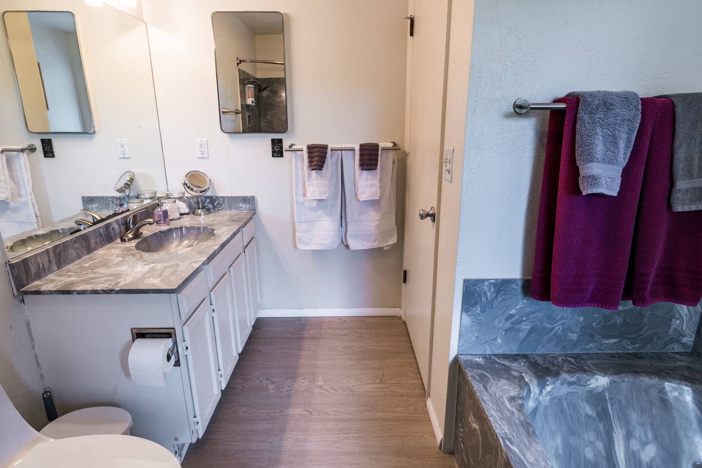 We conscientiously disinfect all living places between guests. Guests have access to entire indoor and outdoor space, laundry room, tour info, hiking maps, hiking poles, binoculars, extra blankets, towels, kitchen, books, games, TV with Roku (Netflix, HBO Now, Hulu & Amazon Video), DVD player with movies. Free Wifi available throughout house. There is a business station with a printer and desks available for your use as well. PLEASE be sure to read the online house manual.