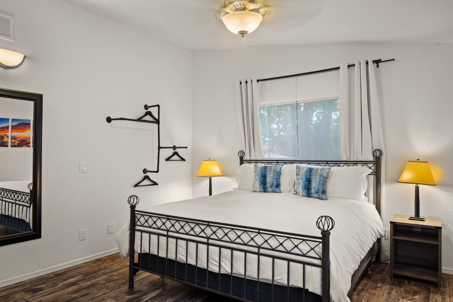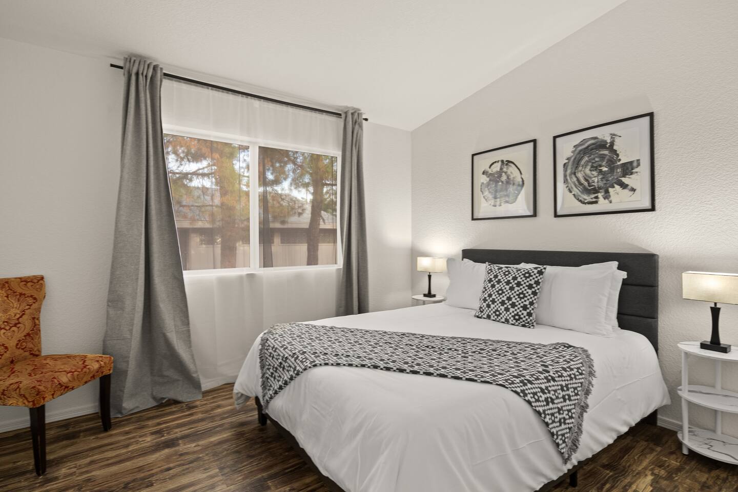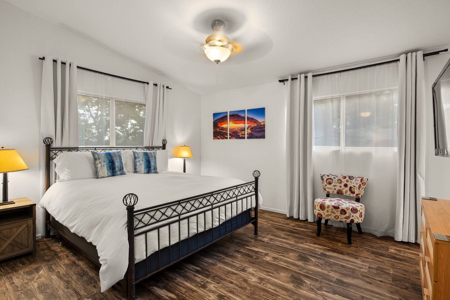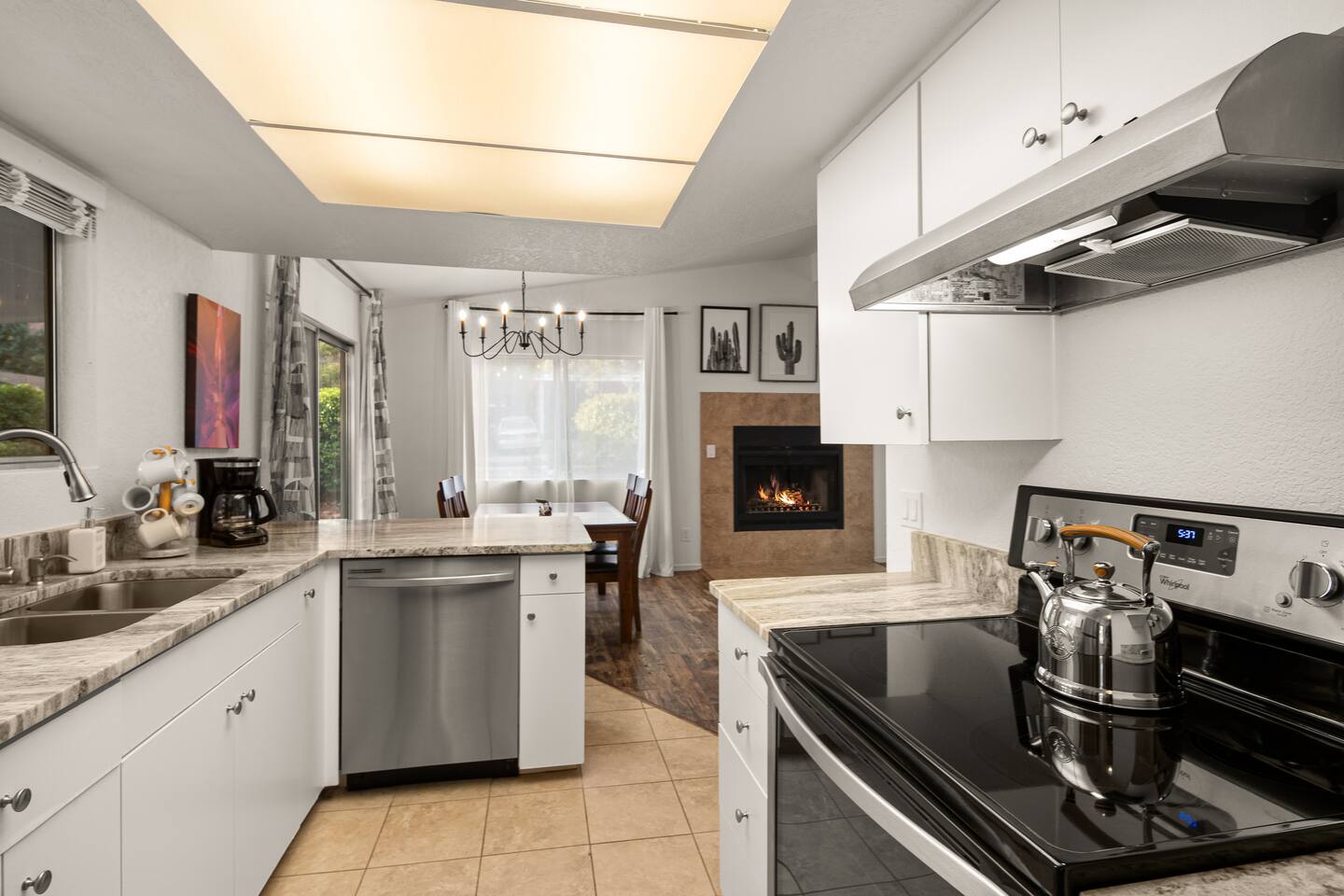 LIVING ROOM: - Open-concept layout with vaulted ceilings - 50" HDTV with standard cable - Wood-burning indoor fireplace - Ceiling fan & portable fans - Comfortable seating for family & friends - Living room sofa pulls out to a King size sleeper sofa KITCHEN: - LG refrigerator & Whirlpool stainless steel stove/oven - Dishwasher & microwave - Coffee maker (drip), hot water kettle, blender - Cooking basics (oil, salt, pepper), pots, pans, baking sheets - Dishware, wine glasses, toaster, and utensils - Dining table & BBQ utensils BEDROOM #1 (Primary Suite): - Comfortable King size bed with premium cotton linens - En suite bathroom for privacy - Clothing storage: dresser, wardrobe, and closet - Extra pillows and blankets BEDROOM #2: - Cozy Queen size bed with cotton & Egyptian cotton linens - Closet and dresser for storage - Located off main hallway BEDROOM #3: - Comfortable Queen size bed and quality linens - Closet space and dresser - Shares hall bathroom BATHROOM #1 (Shared Hall): - Full bath with hot water - Towels, toilet paper, soap, and shower gel - New sink and faucet upgrades BATHROOM #2 (En Suite): - Private master bath - Fresh linens and cleaning products - Granite countertops & updated fixtures OUTSIDE: - Spacious private backyard (not fully fenced) - Propane fire pit with flagstone seating area - Covered patio with outdoor dining area - BBQ grill, outdoor furniture & sun loungers - Scenic Thunder Mountain views - Hot tub with amazing Mountain View’s WELLNESS: - Massage chair: Get a relaxing massage after your hike - Red Light Therapy: May reduce inflammation and redness - Yoga mats and rollers to stretch and relax muscles FEATURES/AMENITIES: - Central heating & air conditioning - Hot tub - Free high-speed WiFi - Washer and dryer in unit - Self check-in with smart lock - Exterior security cameras for safety - Free driveway parking - Single-level home with no stairs - Board games and books - Dedicated workspace in private room NEARBY > Sedona Golf Resort (~1 mi) Picturesque 18-hole course offering sweeping red rock views and a relaxing golf experience. > Bell Rock (~2 mi) Distinctive red sandstone formation ideal for hiking, biking, and vortex energy exploration. > Courthouse Butte Loop Trail (~2 mi) Scenic 4-mile trail circling Courthouse Butte with moderate terrain and striking views. > Chapel of the Holy Cross (~5 mi) Iconic church built into the red rocks, known for its dramatic architecture and peaceful setting. > Cathedral Rock (~6 mi) Famous rock formation offering short but steep hikes and panoramic views from the summit. > Tlaquepaque Arts & Shopping Village (~6 mi) Artistic village with galleries, craft shops, and restaurants in a quaint, Spanish-style environment. > Sedona Heritage Museum (~7 mi) Museum preserving Sedona’s pioneer history with exhibits on local life and culture. > Amitabha Stupa and Peace Park (~8 mi) Spiritual site with a Buddhist stupa, walking paths, and spaces for meditation. > Red Rock State Park (~12 mi) Scenic nature park with trails, wildlife viewing, and ranger-led educational programs. > Slide Rock State Park (~13 mi) Natural rock water slide and swimming area set in Oak Creek Canyon’s beautiful landscape. > Montezuma Castle National Monument (~23 mi) Remarkably preserved cliff dwellings built into limestone cliffs by the Sinagua people. > Jerome Historic District (~29 mi) Charming hillside town with a colorful mining past, now home to unique shops, art galleries, and eateries.