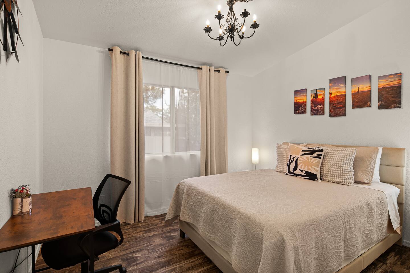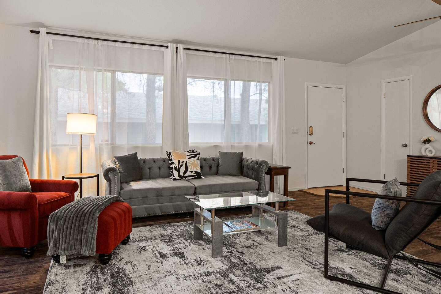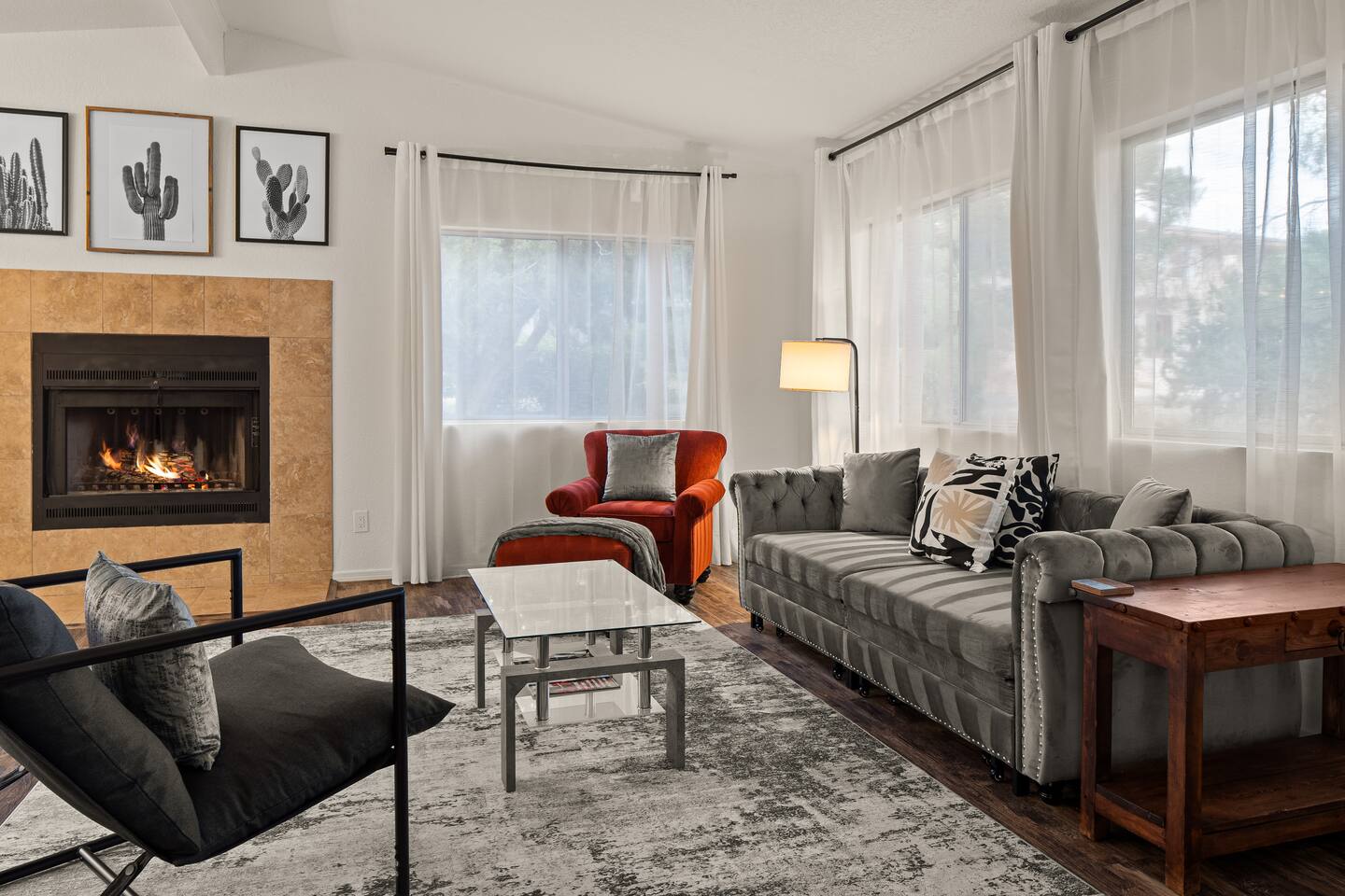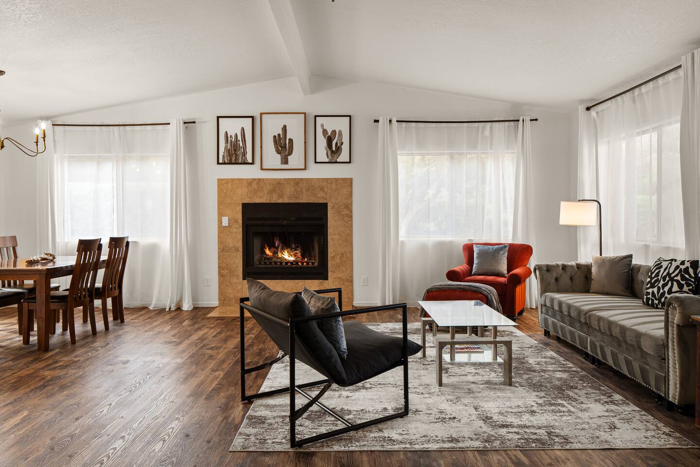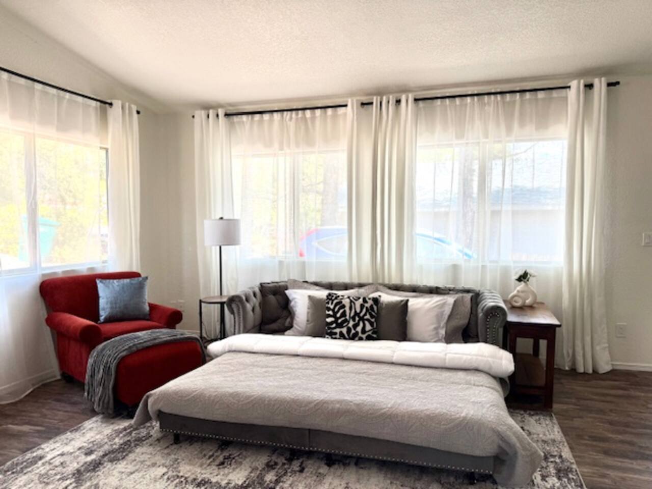LIVING ROOM: - Open-concept layout with vaulted ceilings - 50" HDTV with standard cable - Wood-burning indoor fireplace - Ceiling fan & portable fans - Comfortable seating for family & friends - Living room sofa pulls out to a King size sleeper sofa KITCHEN: - LG refrigerator & Whirlpool stainless steel stove/oven - Dishwasher & microwave - Coffee maker (drip), hot water kettle, blender - Cooking basics (oil, salt, pepper), pots, pans, baking sheets - Dishware, wine glasses, toaster, and utensils - Dining table & BBQ utensils BEDROOM #1 (Primary Suite): - Comfortable King size bed with premium cotton linens - En suite bathroom for privacy - Clothing storage: dresser, wardrobe, and closet - Extra pillows and blankets BEDROOM #2: - Cozy Queen size bed with cotton & Egyptian cotton linens - Closet and dresser for storage - Located off main hallway BEDROOM #3: - Comfortable Queen size bed and quality linens - Closet space and dresser - Shares hall bathroom BATHROOM #1 (Shared Hall): - Full bath with hot water - Towels, toilet paper, soap, and shower gel - New sink and faucet upgrades BATHROOM #2 (En Suite): - Private master bath - Fresh linens and cleaning products - Granite countertops & updated fixtures OUTSIDE: - Spacious private backyard (not fully fenced) - Propane fire pit with flagstone seating area - Covered patio with outdoor dining area - BBQ grill, outdoor furniture & sun loungers - Scenic Thunder Mountain views - Hot tub with amazing Mountain View’s WELLNESS: - Massage chair: Get a relaxing massage after your hike - Red Light Therapy: May reduce inflammation and redness - Yoga mats and rollers to stretch and relax muscles FEATURES/AMENITIES: - Central heating & air conditioning - Hot tub - Free high-speed WiFi - Washer and dryer in unit - Self check-in with smart lock - Exterior security cameras for safety - Free driveway parking - Single-level home with no stairs - Board games and books - Dedicated workspace in private room NEARBY > Sedona Golf Resort (~1 mi) Picturesque 18-hole course offering sweeping red rock views and a relaxing golf experience. > Bell Rock (~2 mi) Distinctive red sandstone formation ideal for hiking, biking, and vortex energy exploration. > Courthouse Butte Loop Trail (~2 mi) Scenic 4-mile trail circling Courthouse Butte with moderate terrain and striking views. > Chapel of the Holy Cross (~5 mi) Iconic church built into the red rocks, known for its dramatic architecture and peaceful setting. > Cathedral Rock (~6 mi) Famous rock formation offering short but steep hikes and panoramic views from the summit. > Tlaquepaque Arts & Shopping Village (~6 mi) Artistic village with galleries, craft shops, and restaurants in a quaint, Spanish-style environment. > Sedona Heritage Museum (~7 mi) Museum preserving Sedona’s pioneer history with exhibits on local life and culture. > Amitabha Stupa and Peace Park (~8 mi) Spiritual site with a Buddhist stupa, walking paths, and spaces for meditation. > Red Rock State Park (~12 mi) Scenic nature park with trails, wildlife viewing, and ranger-led educational programs. > Slide Rock State Park (~13 mi) Natural rock water slide and swimming area set in Oak Creek Canyon’s beautiful landscape. > Montezuma Castle National Monument (~23 mi) Remarkably preserved cliff dwellings built into limestone cliffs by the Sinagua people. > Jerome Historic District (~29 mi) Charming hillside town with a colorful mining past, now home to unique shops, art galleries, and eateries.